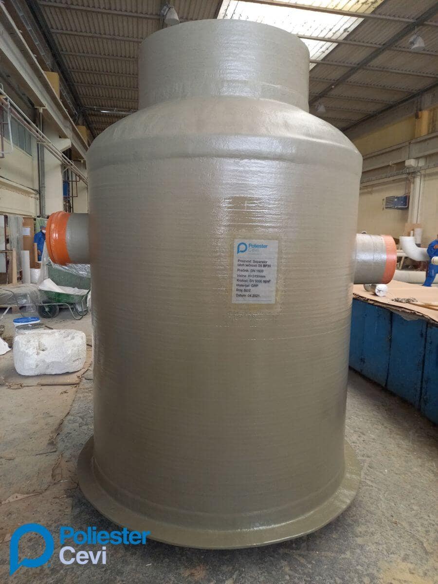 Separator lakih tečnosti je proizvod od poliestera namenjen za čišćenje vode zagađene plutajućim tečnostima kao što su motorna ulja, gas, ulje, itd. GRP separatori iz našeg proizvodnog programa ispunjavaju sve zahteve Evropskog standarda EN 858. Separatori se izrađuju od nezasićenih poliesterskih smola ojačanih staklenim vlaknima (GRP), pri čemu treba imati na umu da je GRP lagan materijal sa izvanrednim mehaničko-fizičkim karakteristikama i može podneti velika opterećenja. Smole korištene u procesu proizvodnje GRP-a pružaju otpornost na koroziju u širokom rasponu pH vrednosti, te separatori mogu zadovoljiiti najrazličitije uslove eksploatacije.