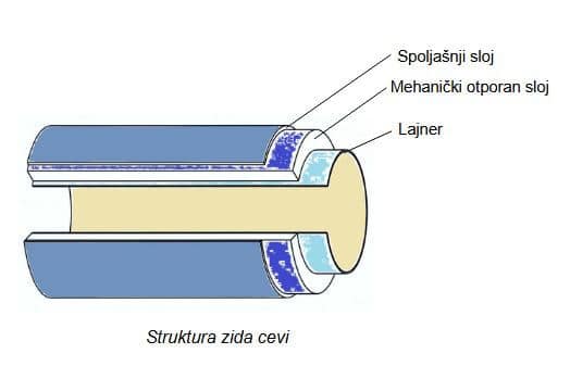 Izrada zida cevi teče od unutrašnje strane prema spoljašnjoj. Ovaj princip izrade omogućava konstantan unutrašnji prečnik i optimalna hidraulička svojstva. Unutrašnja i spoljašnja kora zida cevi služe kao zaštitna barijera. Ovim postupkom namotavanja izrađujemo cevi prečnika od DN 250 mm do DN 2400 mm.